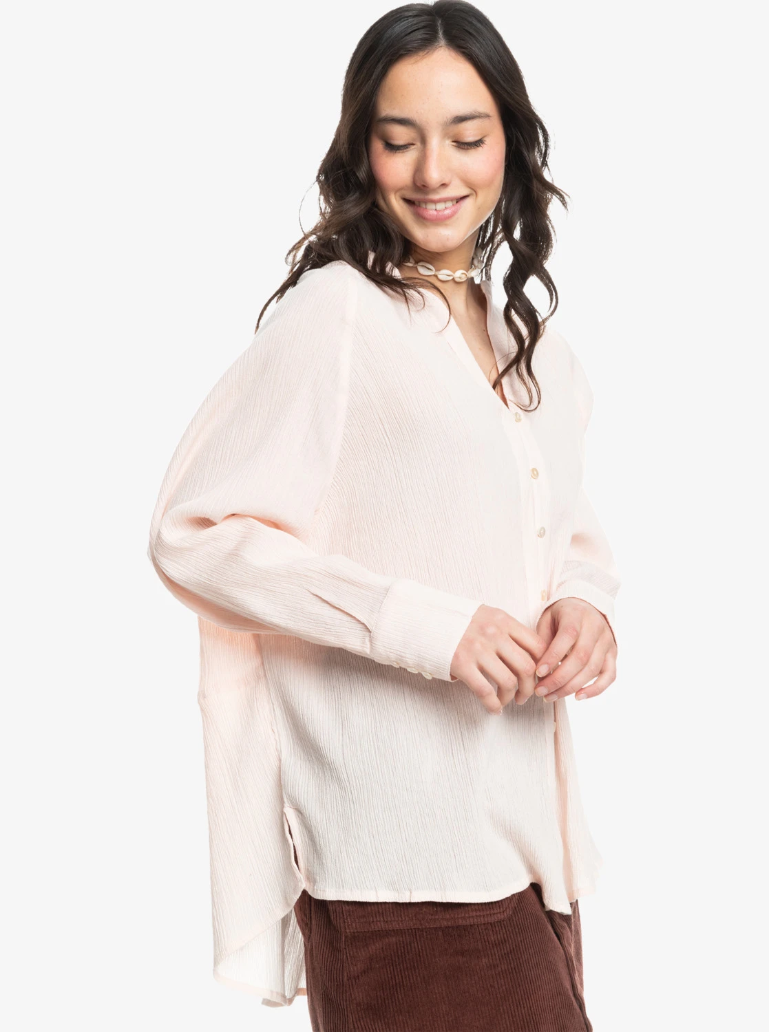 Verschluss:Frontöffnung mit Muschelknöpfen