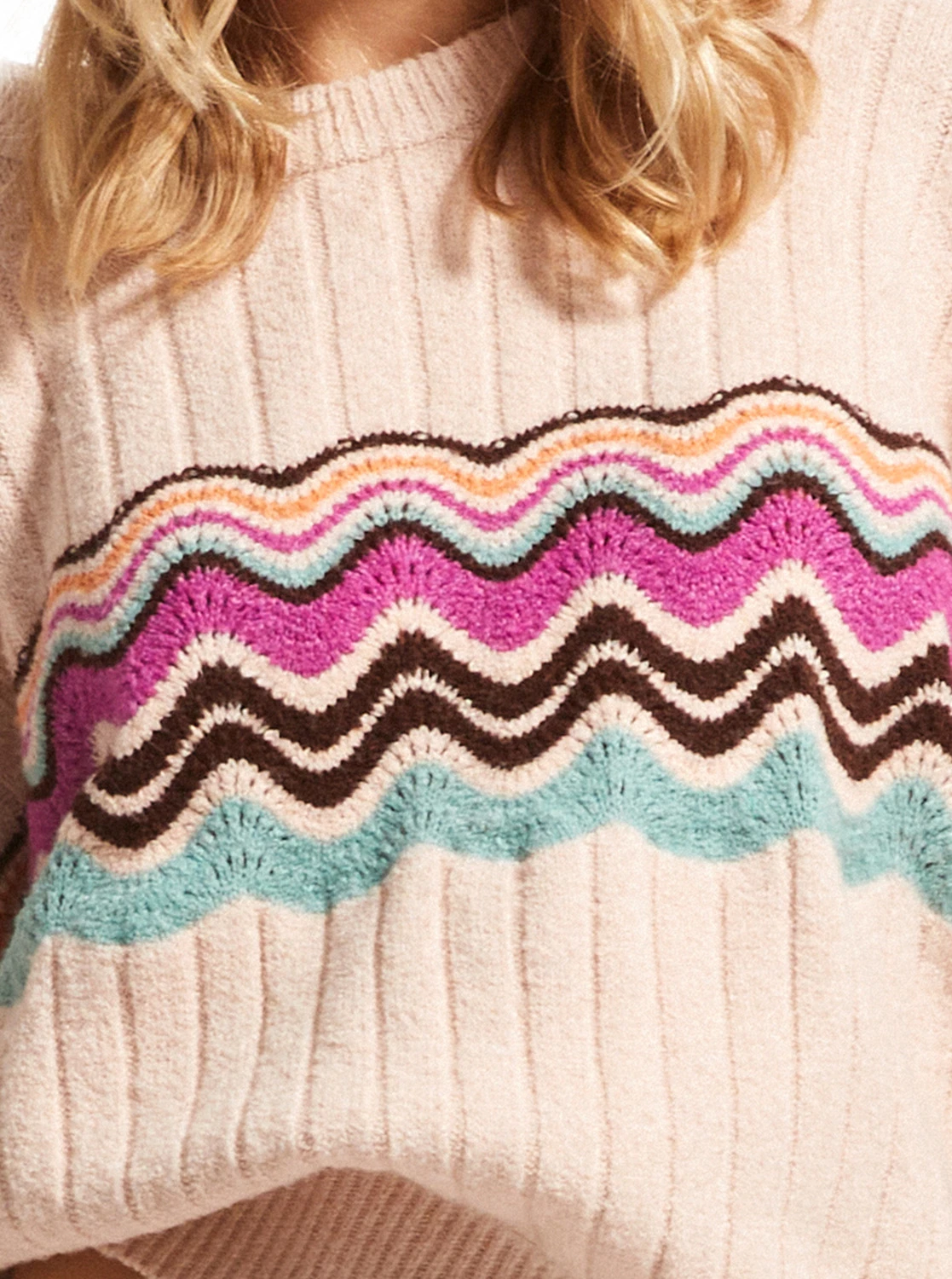 Andere Features: Gestrickte Streifen auf der Brust